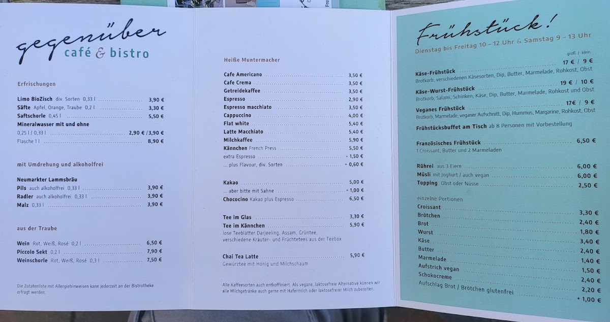 With a cozy atmosphere complemented by soothing music, it’s an ideal spot for gatherings with friends or even a quiet moment of work with reliable Wi-Fi on hand. The friendly service enhances your visit, making it a welcoming retreat. Expect delicious homemade cakes and pastries that promise to satisfy your sweet tooth. Don’t miss a visit to Café & Bistro Gegenüber; it’s a culinary experience worth savoring.